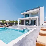 Villa Infinity Theo Kalamákion med 4 sovrum, som ligger 4 km från Dionisios Solomos strand, erbjuder gästerna en terrass där de kan koppla av.